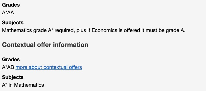 牛津本科不提供纯经济学课程,不过我们可以看一下牛津经济与管理和PPE的申请要求。