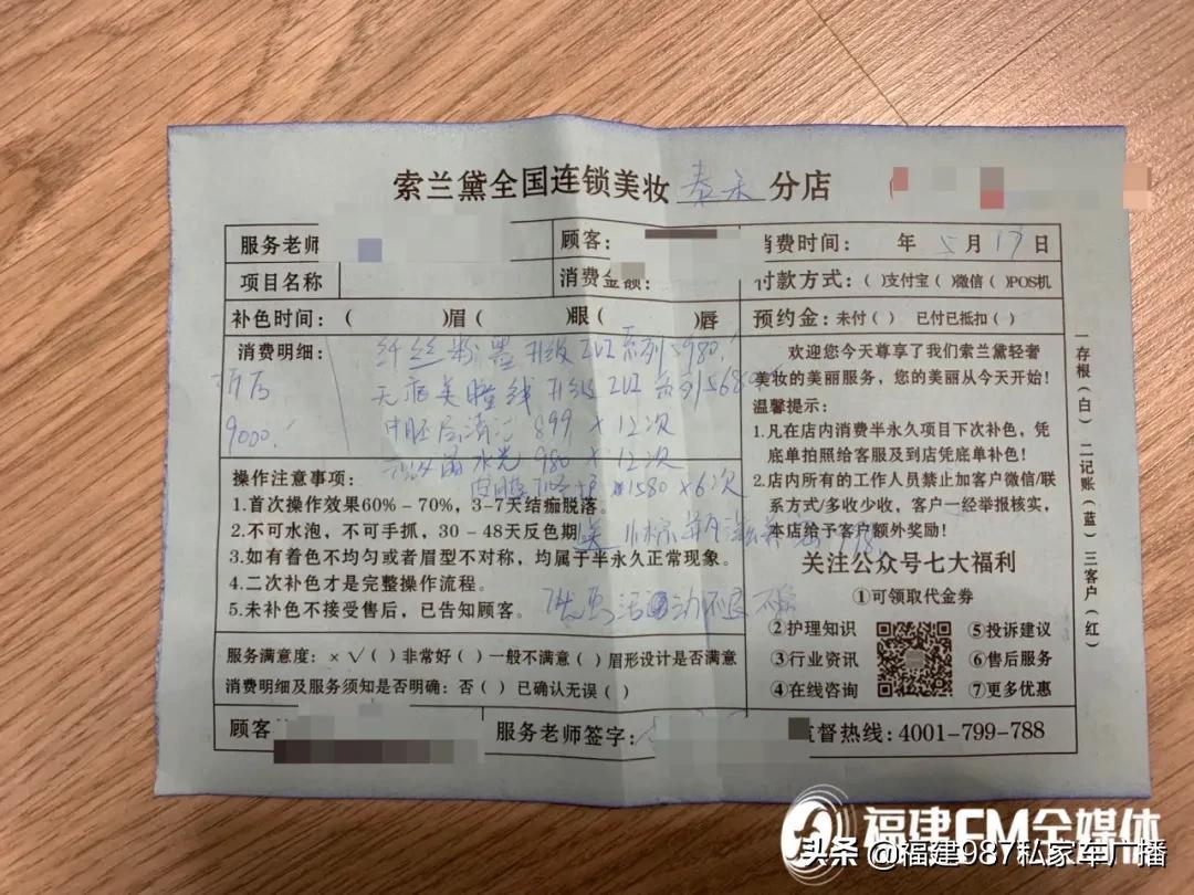 林女士告诉FM全媒体《维权超给力》,最近,她在微信朋友圈看到一则“索兰黛”的纹眉广告,于是添加了客服微信。咨询后了解到,因为“520”活动,只要支付30元的定金,到店支付300元,就可以做素颜眉,支付500元就可以做粉妆眉。