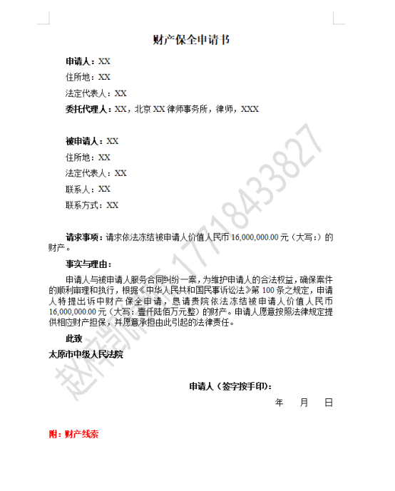 财产保全申请书虽然作为立案时的辅助性材料,但此份文书的提交及案件对于被告人财产的成功保全,将会对案件的进行起到举足轻重的作用。
