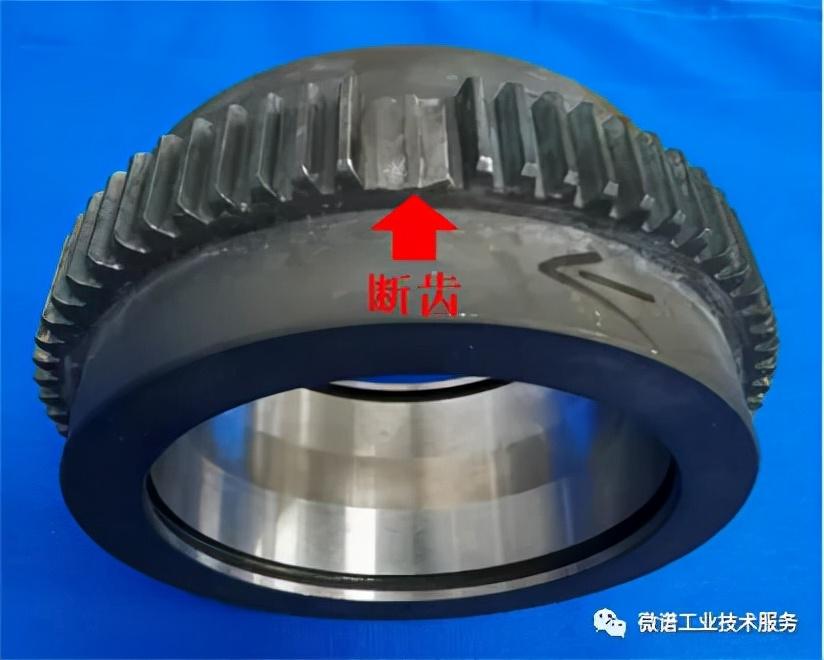 某型号离合器外圈,在进行数次寿命磨合后出现断齿现象,此次出现断齿的产品均为同批次产品。该产品为量产、成熟产品,产品原材料牌号为20CrMnTi,表面采用整体渗碳淬火+低温回火热处理工艺,产品设计寿命为10000次。