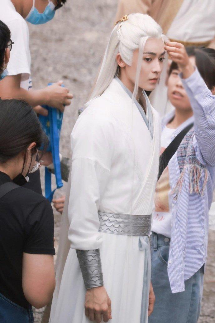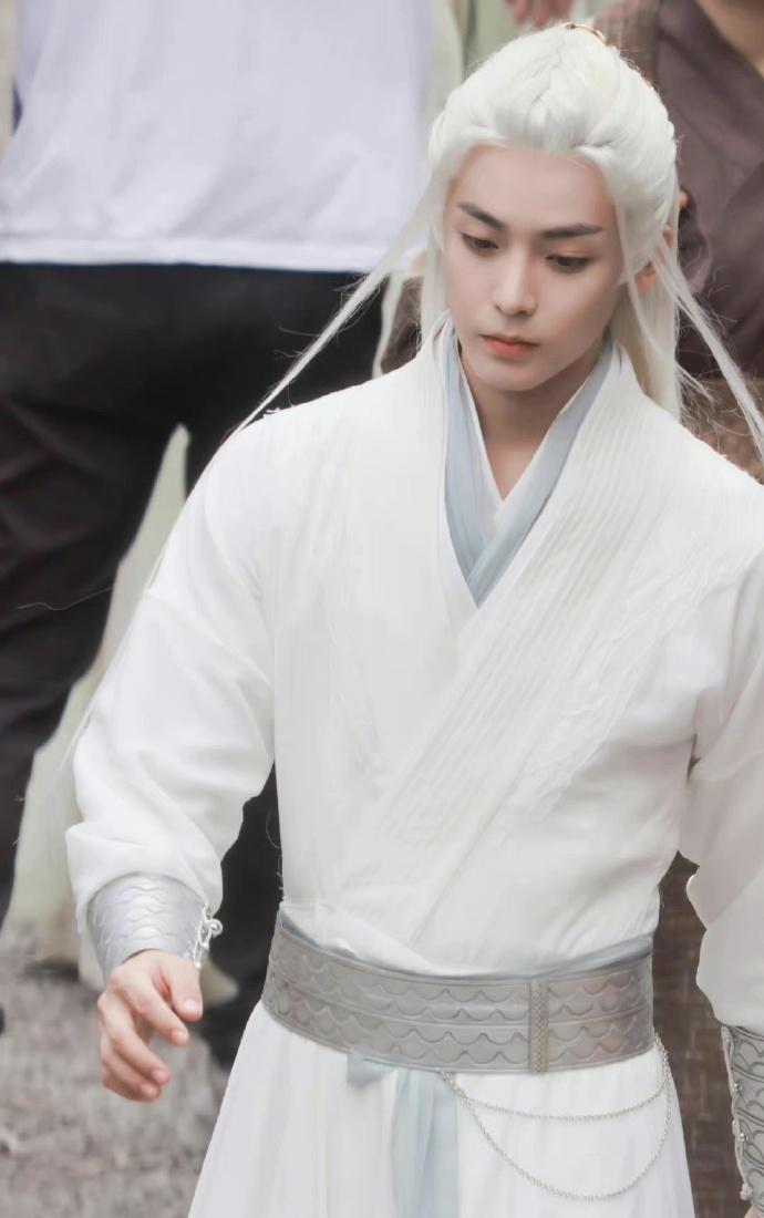 他的冷白皮配上白发,眉宇间的英气十分的足,身材比例也是十分的绝,一股仙侠剧的氛围直接拉满,整个人的仪态也是超级仙。