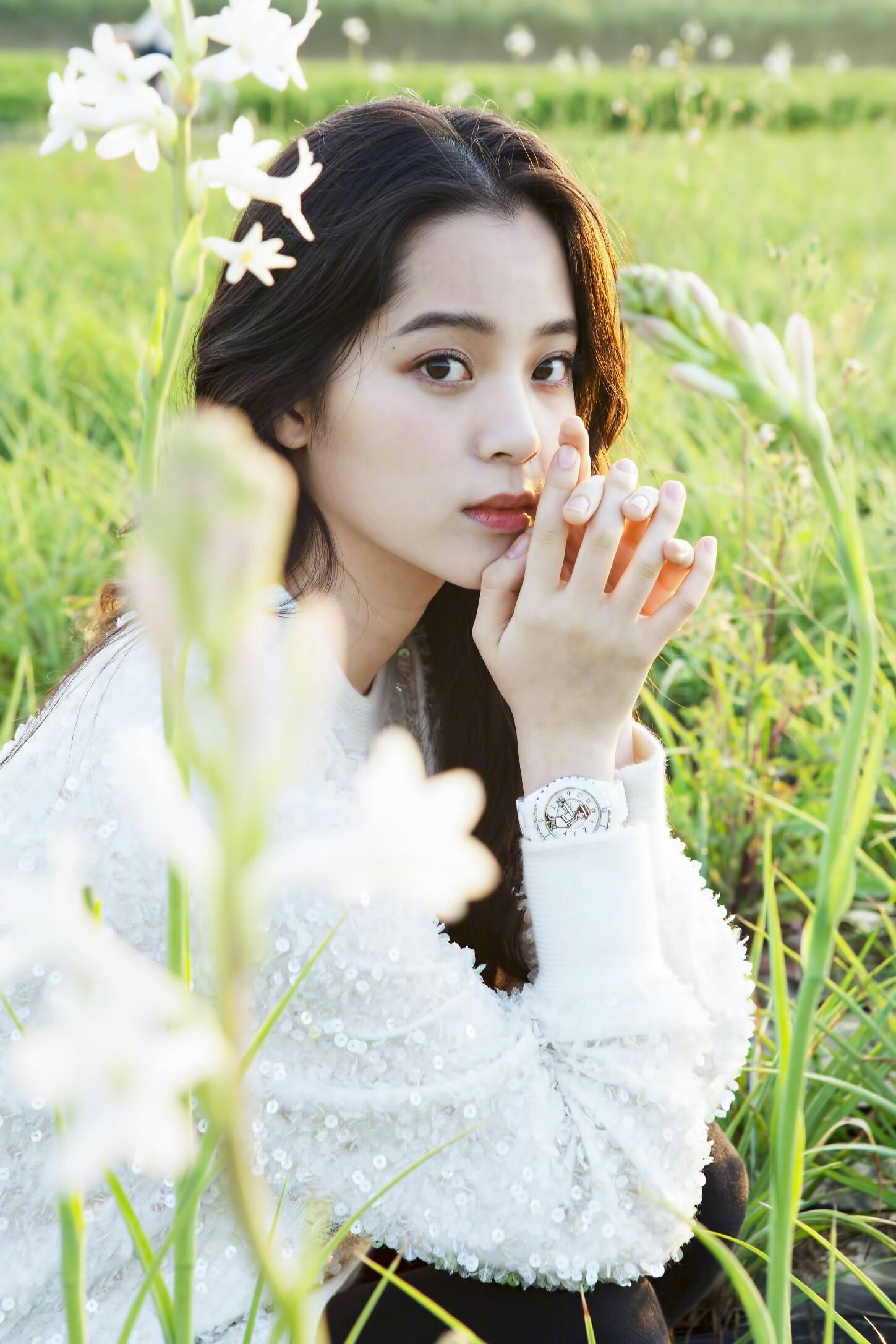 不必过多修饰,简单的妆容和白色吊带,就足以美得惊艳。