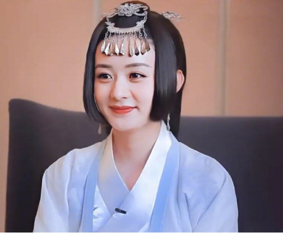 一双笑眼,嘴角弯弯,银色流苏发饰缀在额头,两鬓的黑发乖巧地贴在脸上,试问有谁看到这样的小赵会不想上去摸摸她的头,捏捏她的脸颊呢?