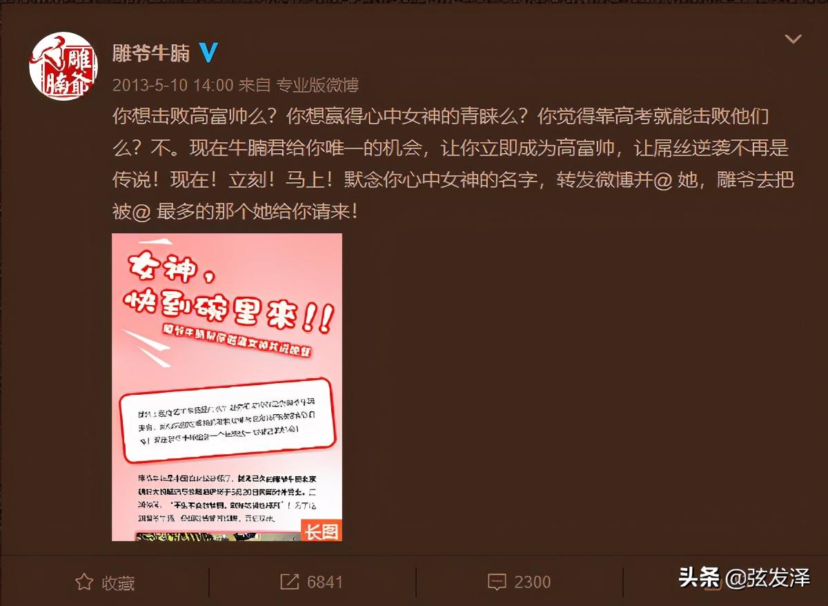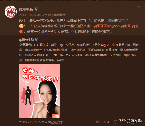 这个案例是“雕爷牛腩”新店开业,在微博做的一场推广活动,在讲述案例之前,您可以先问自己一个问题:假如您手上现有足够的预算,可以请两三位名人在今日头条做广告,您会怎么做?