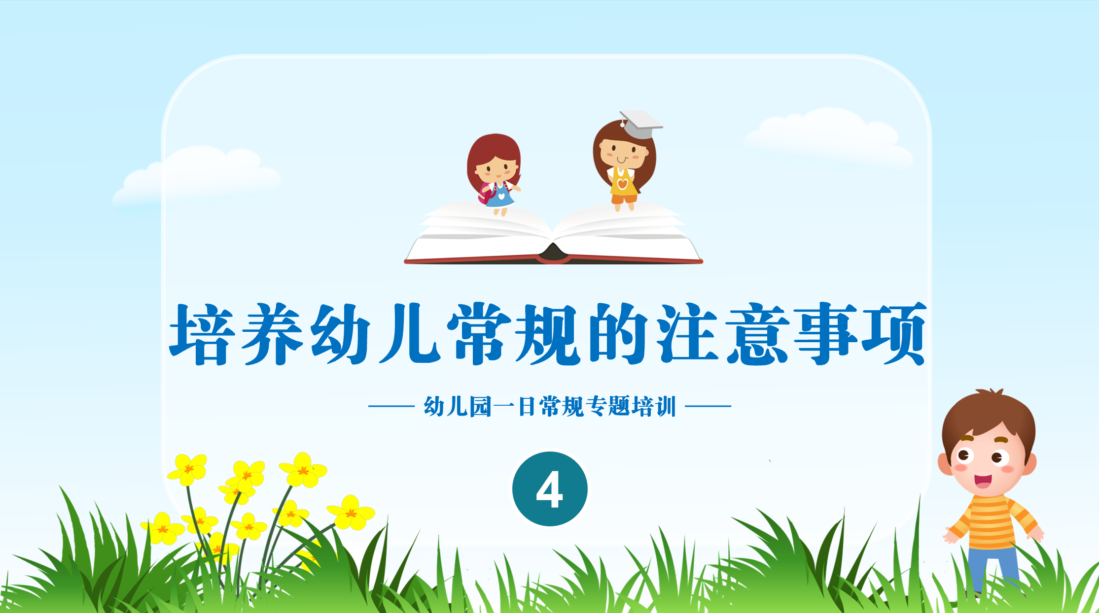 常规:是指是指一日生活中的各个环节的安排顺序以及要求幼儿在各个环节中必须遵守的行为准则。