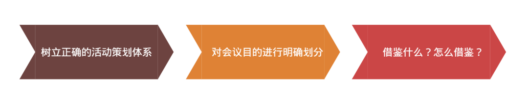 当明确了会议目的,我们就带着批判性眼光去进行借鉴与参考。案例之中出现的优质方式是否与会议目的相违背,是的话,则要弃用。