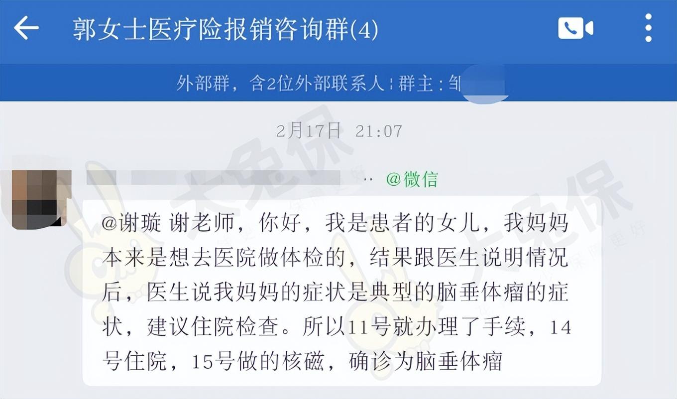 入院后,郭女士主动联系了大兔保专属规划师邹老师,邹老师快速了解了郭女士的出险情况后,迅速对接上大兔保理赔负责人小璇老师,小璇老师开始一对一协助郭女士理赔。