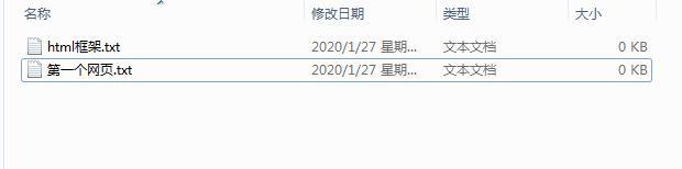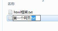 step4:复制"html框架.txt"文件,更名为"第一个网页.txt"。原始的"html框架.txt"文件为以后备用。