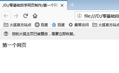 之间。如下所示:保存后使用浏览器打开。 第一个页面 然后,使用浏览器打开,如图所示:标题出现在页面中了。