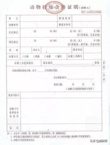 在出发前3-5天,带着疫苗本、宠物、托运箱去县区以上动物卫生监督所开具证明。