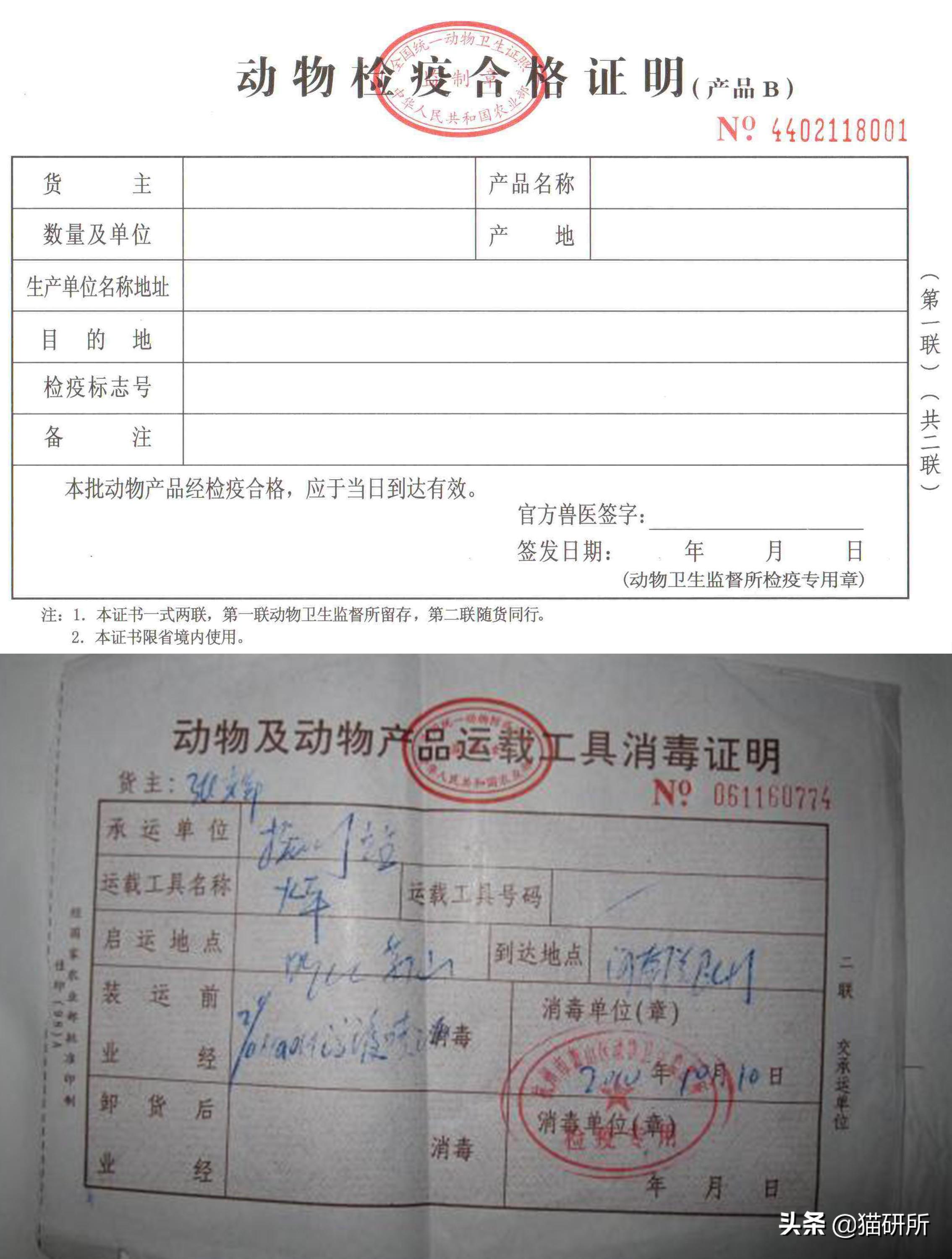 ③ 消毒证明,和疫苗合格证明一起,卫生监督所开具