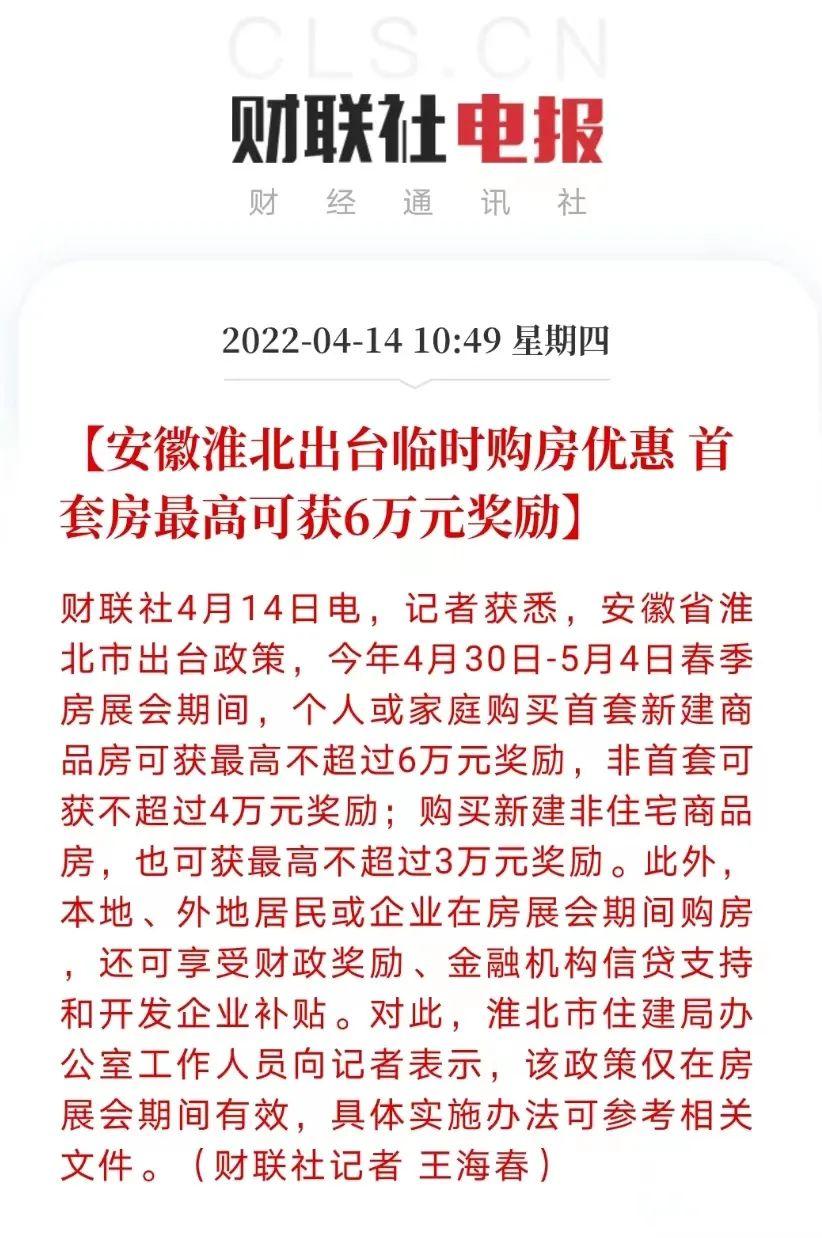 一是安徽淮北,推出高达6万的购房补贴,这个优惠力度,比前段时间其他地级市推出的政策优惠有所加大。