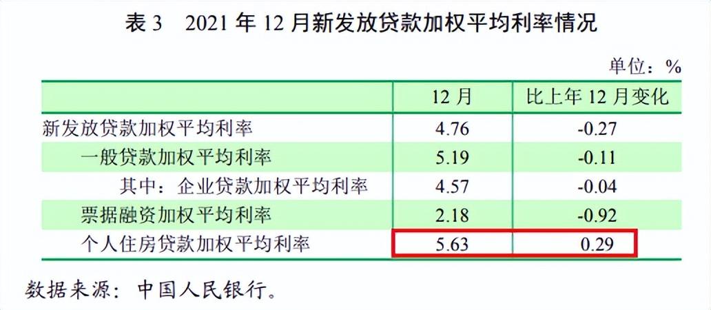 央行数据显示,2021年12月的全国新发放商业房贷的平均加权利率是5.63%,有的地方更高,去到6%以上。