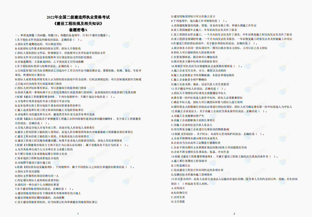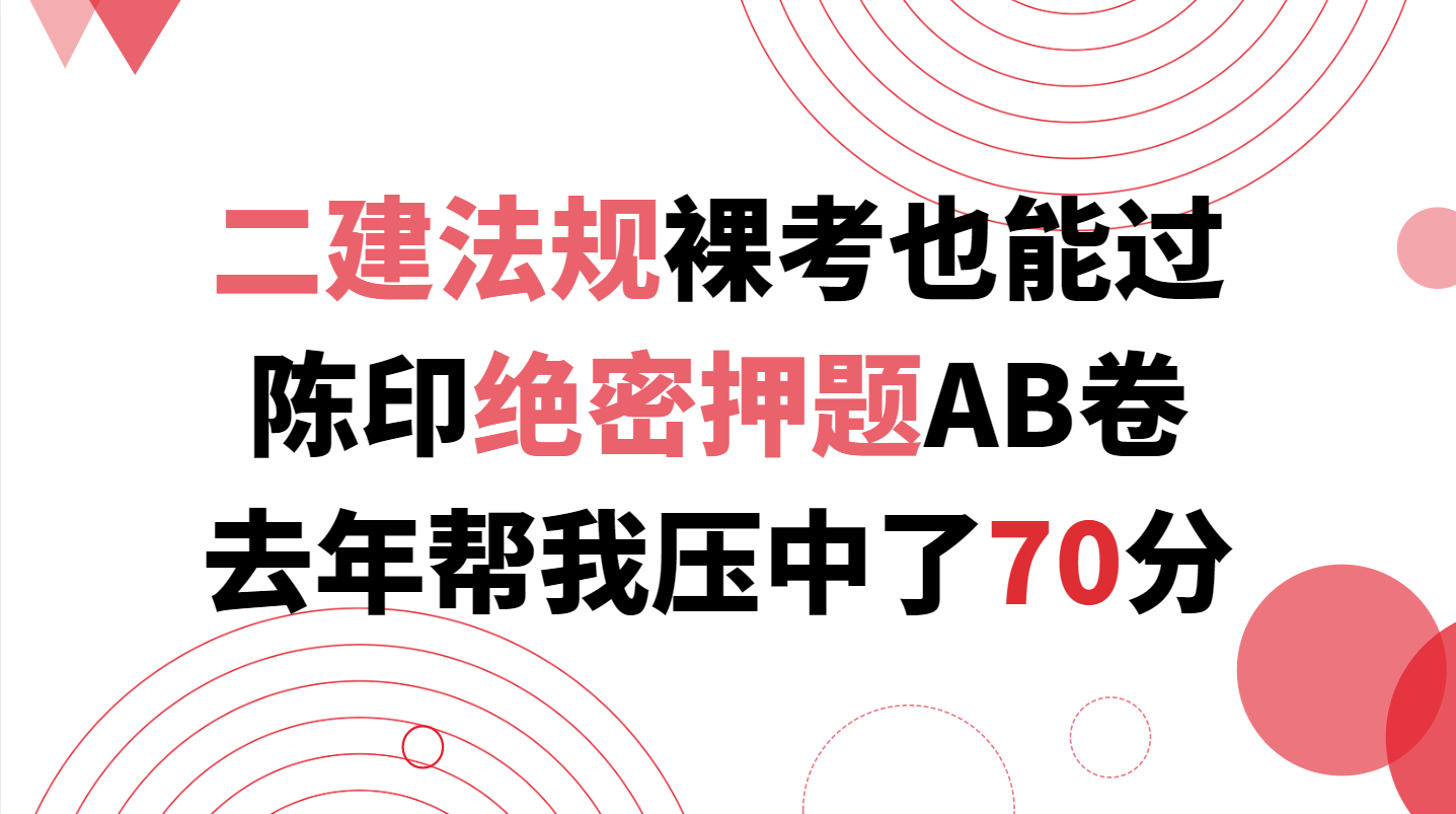 明天就是二建考试了,我把22年最新版的陈印法规押题卷分享给大家,希望大家明天都能取得好成绩金榜题名!完整版获取方式见文末
