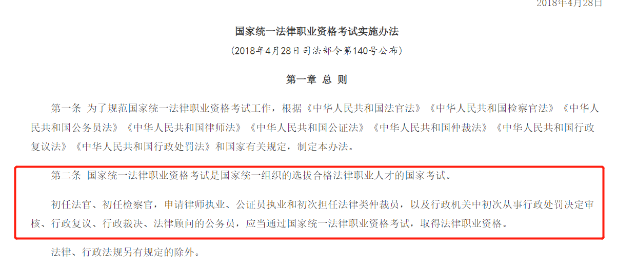 2018年“司法考试”改革变成“法考”后,“法考证”成为法律职业人员的“刚需证书”,初任法官、初任检察官,申请律师执业、公证员执业和初次担任法律类仲裁员,以及行政机关中初次从事行政处罚决定审核、行政复议、行政裁决、法律顾问的公务员,应当通过国家统一法律职业资格考试,取得法律职业资格。