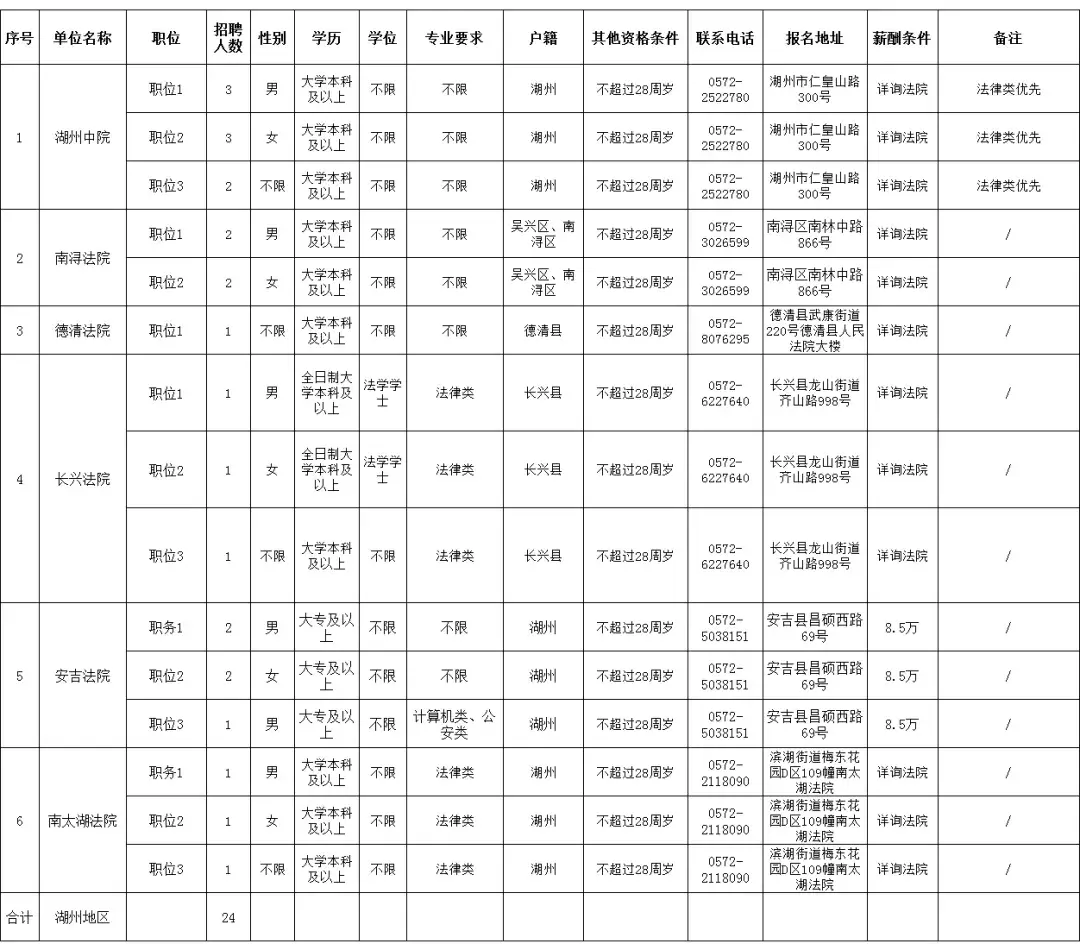5.具体公告内容及附件下载,请关注湖州中院微信公众号或登录湖州人才网(http://www.hzhr.com/Web/News/14943.html)