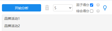 因为案例的预设维度为5所以将分析项拖拽到右侧分析框后,下拉选择因子个数为5并勾选因子得分。