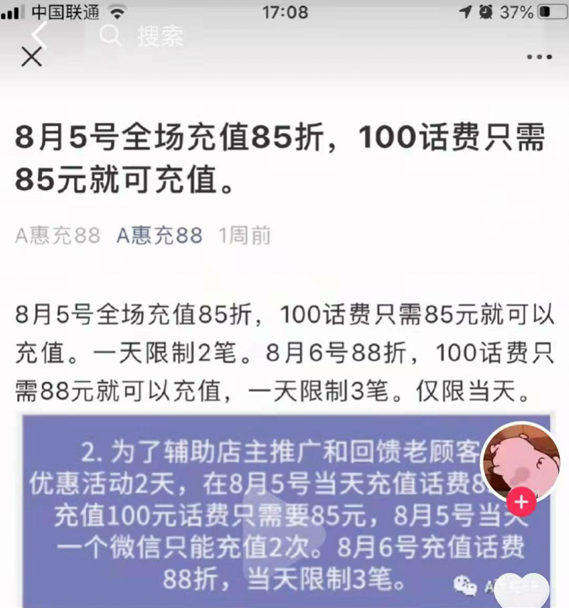 有许多网友反映通过“A惠充88”平台充值话费一直没有到账的情况。记者了解到,有网友统计,截至8月17日,反映损失的消费者可能有上千人,每人的充值金额在数十元到数千元不等,有网友反映自己有为多个手机号充值的情况。