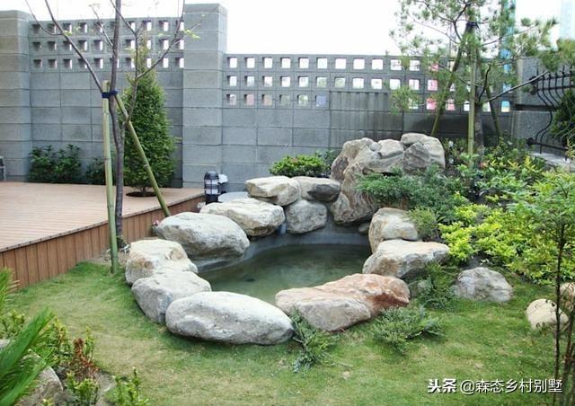 草地中间用大石头区隔出一个池塘,想养锦鲤也不是问题!