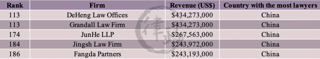 除此之外,律师人数进入全球前200名的中资所还有国浩、中伦文德、炜衡、德和衡、隆安、泰和泰、中伦、中银、浩天信和、康达、金诚同达、段和段、观韬中茂、方达、汇业、天元、广和、环球、万商天勤、君合、君泽君、竞天公诚、众成清泰共23家律师事务所。