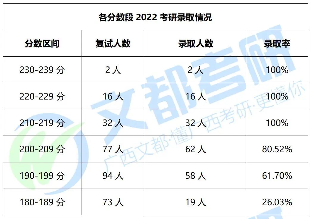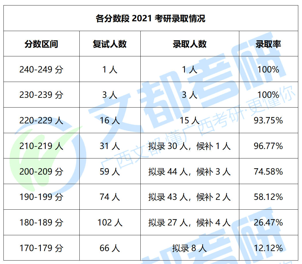 上面列举的是2022考研、2021考研广西财经学院会计专硕(全日制)各个分数段的录取情况。