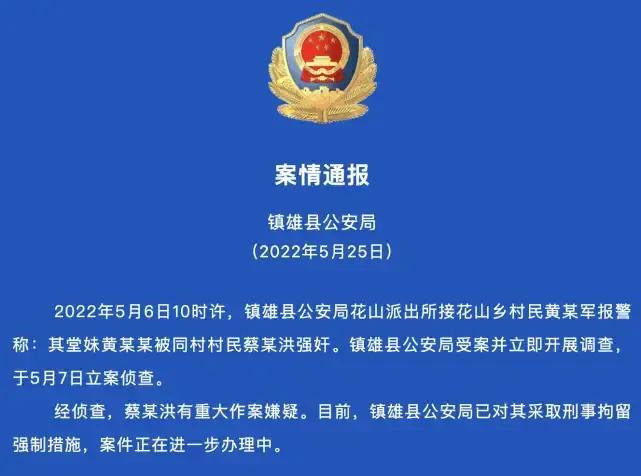 5、2022年5月6日,镇雄县公安机关立案调查,第一时间提取蔡某DNA进行对比后,对蔡某进行了刑拘。