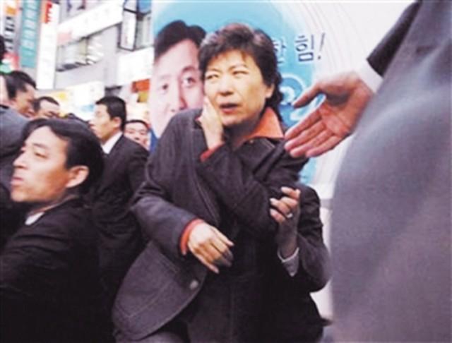 2006年,在韩国首尔的一家百货公司前,正在准备演讲的朴槿惠突然遇刺:一名男子高高举起手里的美工刀,凶狠地划伤了她的脸部。