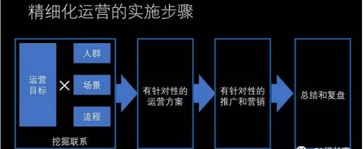 平时做精细化运营的时候,常规怎么做精细化运营的实施?首先要有运营目标,是增加收入还是增加活跃度,提高新用户。围绕这个目标在人群、场景和流程角度做细分。结合自身资源做有针对性的运营方案和推广、营销。