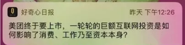 看到此条推送,我的理解是美团这家公司的运作是如何影响人们的消费习惯、工作状态以及资本市场的运作。