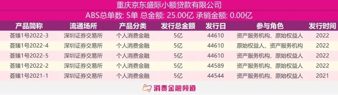 2015年至今,京东盛际小贷公司发行消费金融ABS 约5单,发行总金额25亿元。