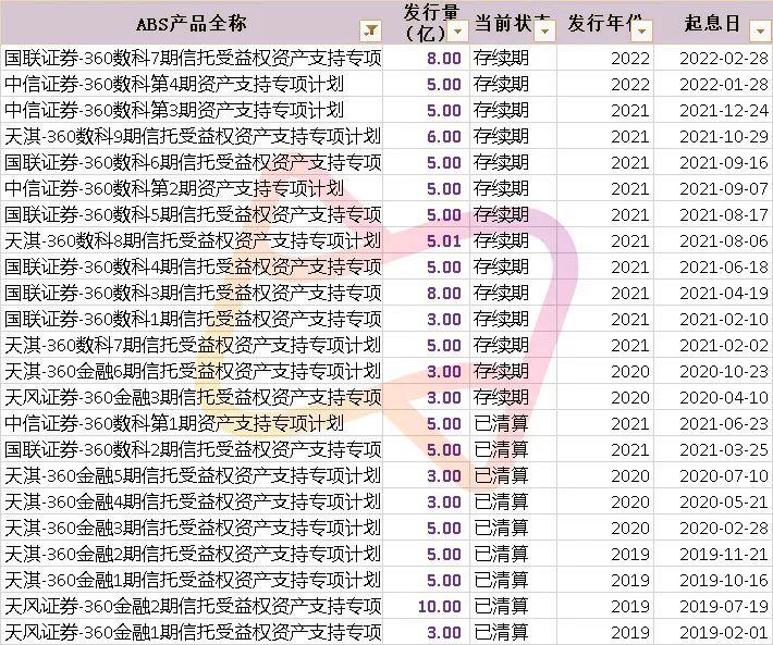 360数科存续期ABS约11单,发行总金额约71亿元。
