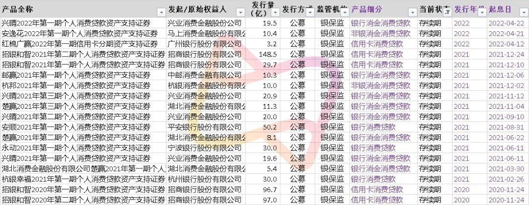 据统计,沪深证券交易所以及银行间市场发行的消费金融资产证券化产品(消费金融ABS)断断续续一直在发行,只是额度没有2020年那么高了。