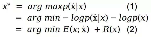 E(x;ẋ)是数据项,也就是似然的负对数,R(x)是图像的先验项,也就是先验的负对数。
