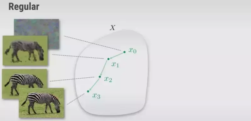 现在的任务是在图像x上最小化Eq(2)。传统的方法是用随机噪声初始化x,然后计算函数关于x的梯度,遍历图像空间直到收敛到某个点。