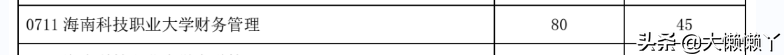 海南科技职业大学的财务管理2021年的招生人数是100人,录取分数是80分,上线人数是45人.