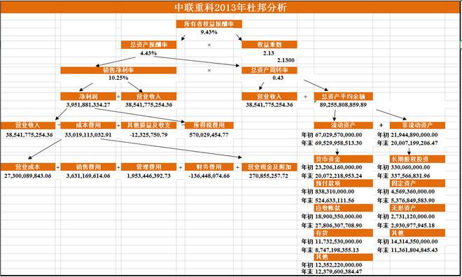 从ROE看,2011年为25.02%,而到了2013年则下降至9.43%,那是什么原因呢?我们从上而下开始分析: