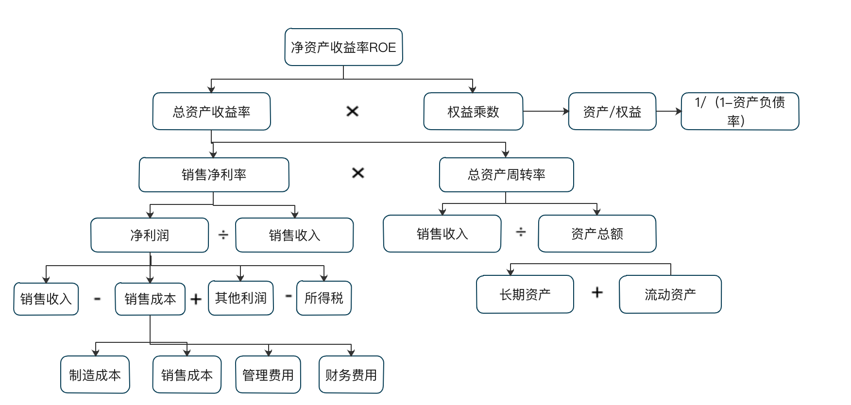 通过我上面的介绍,可以知道杜邦分析法其实就是以ROE为核心,自上而下拆分的一个金字塔结构: