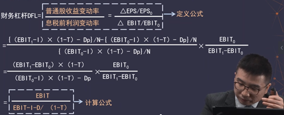 所以我们用[△EPS/EPS]÷[△EBIT/EBIT]反映固定利息费用带来的财务杠杆。