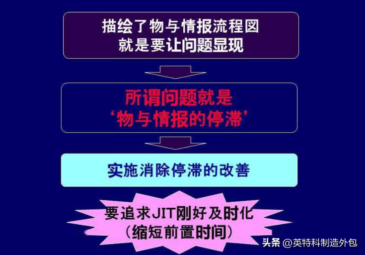 因此,我们可以通过制作物与信息的流程图,发现并改善停滞点,适时地只制作和搬运需要的物品,使每个工序从部分最优转为整体最优。