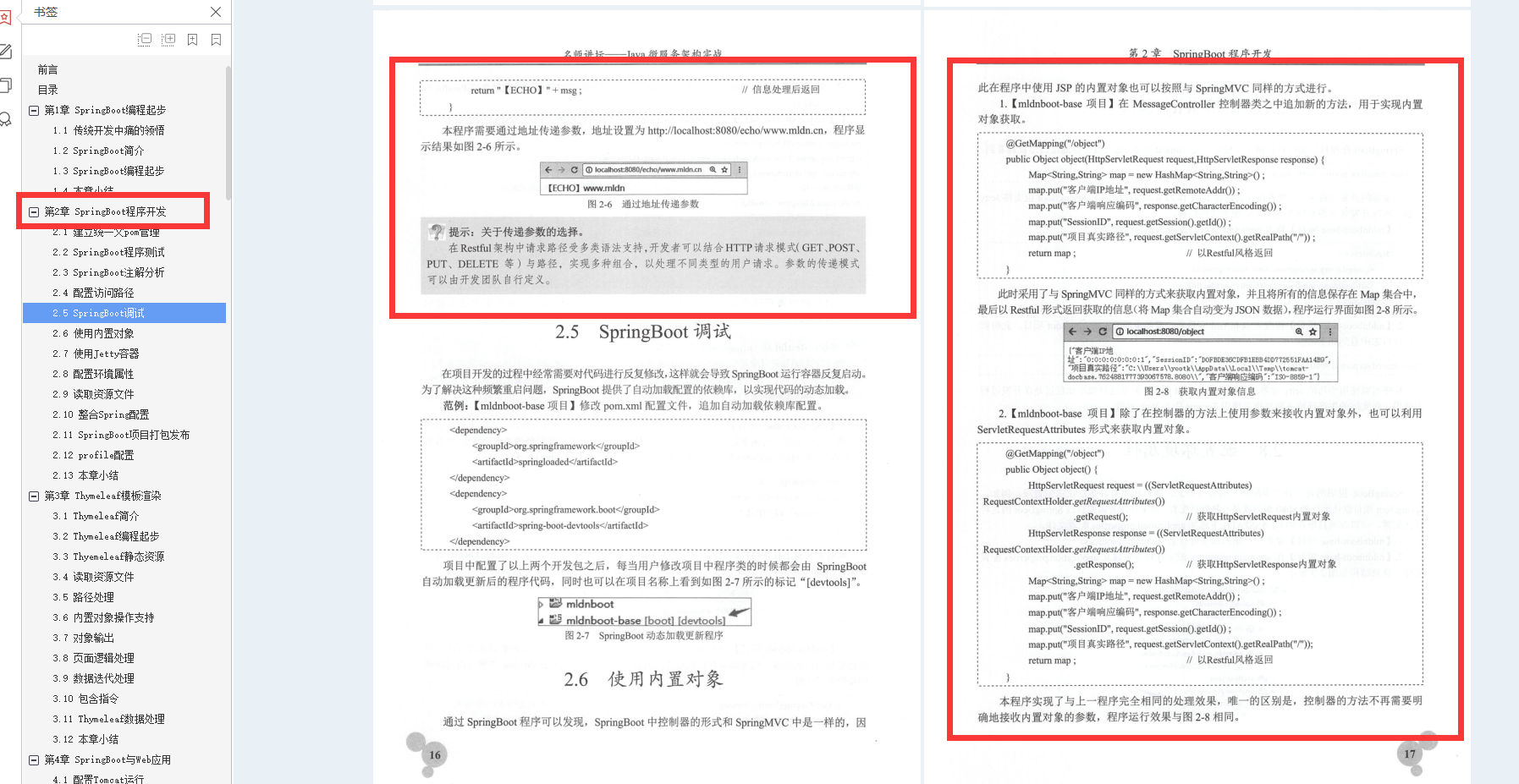 第2章SpringBoot程序开发:本章将为读者详细讲解SpringBoot开发常用的各项技术,包括代码测试、Jetty配置、资源加载、访问路径、profile配置、项目打包等。
