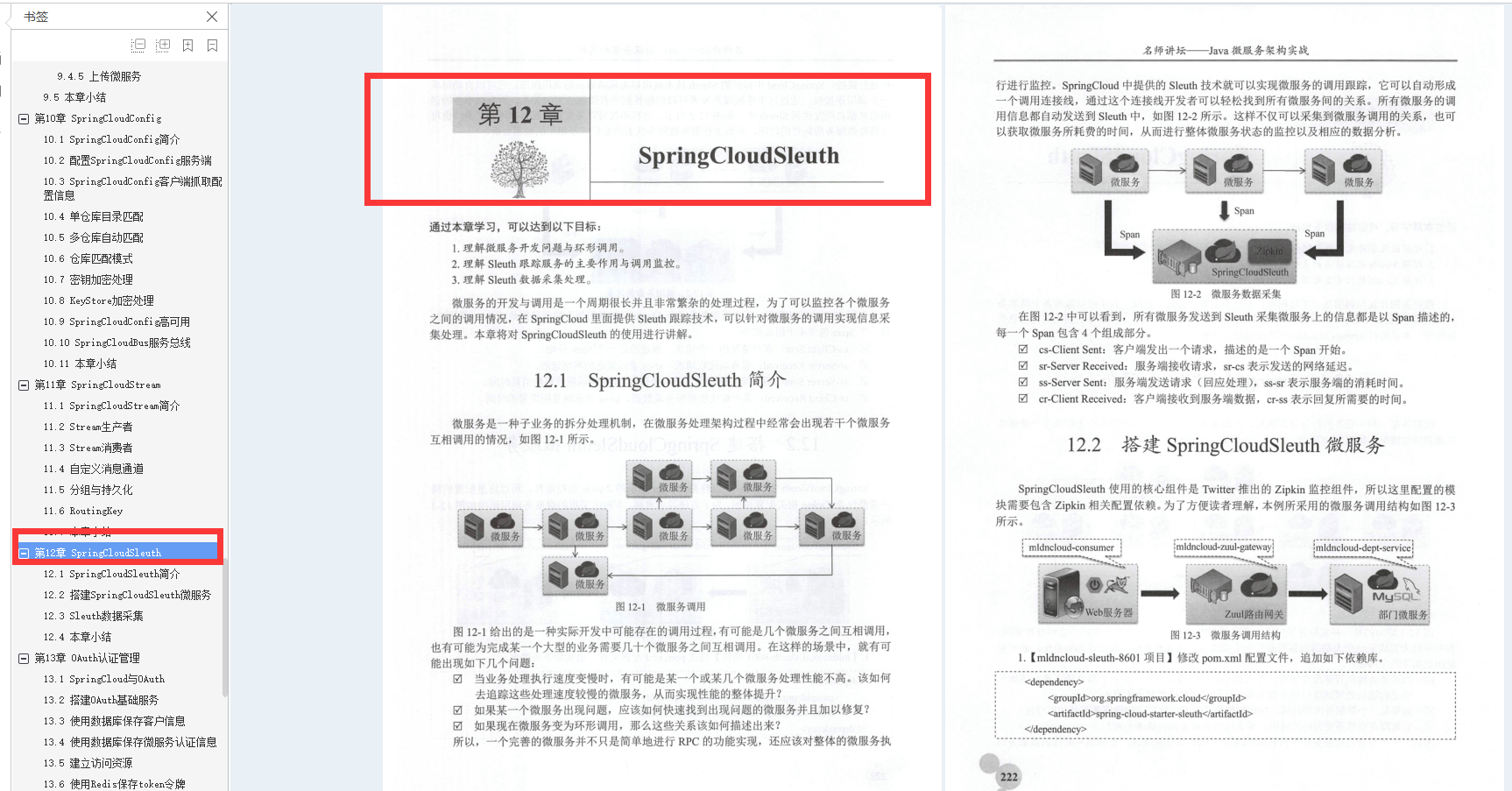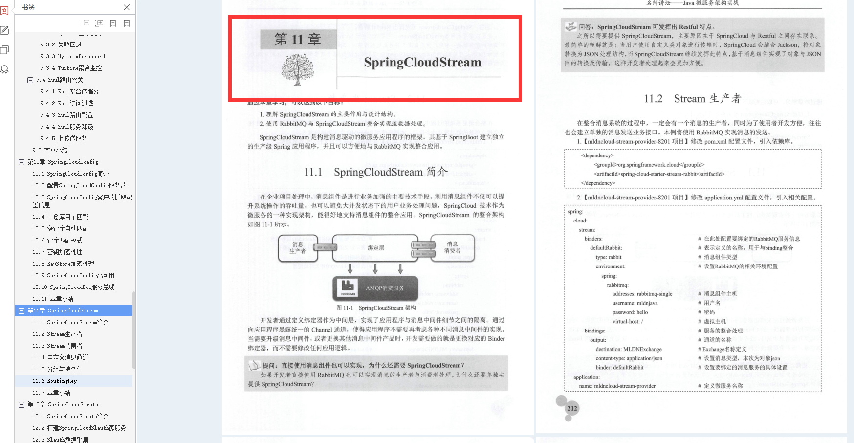 第11章 SpringCloudStream:讲解微服务中信息采集的搭建,主要与RabbitMQ整合。第12章SpringCloudSleuth:讲解微服务调用监控跟踪、Zipkin、数据采集。