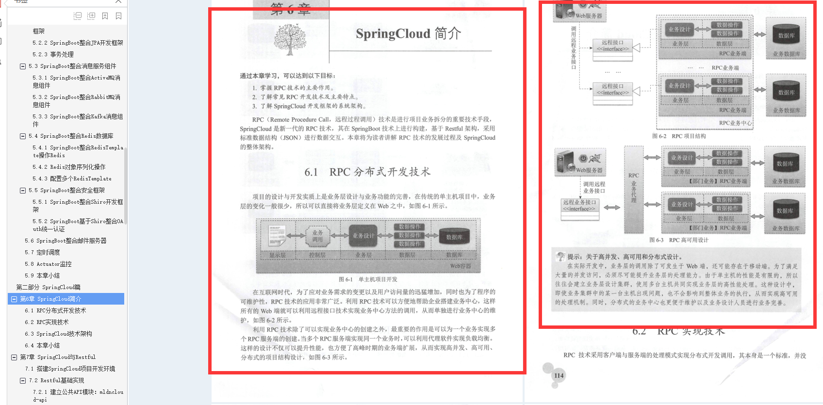 1.掌握RPC技术的主要作用。2.了解常见RPC开发技术及主要特点。3.了解SpringCloud开发框架的系统架构。