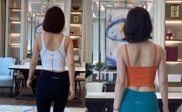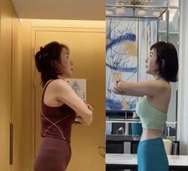 「艾童小姐姐」坚持一年多开合跳,指出有助练出少女背,穿上小背心时露出骨感美。而前方的肚子也愈来愈平坦。图中为9个月成果。