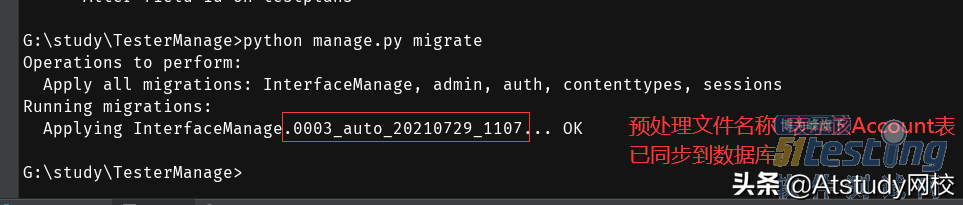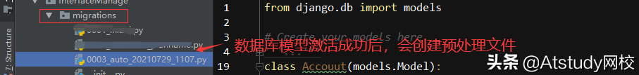 执行激活命令后会在项目的migrations目录下生成一个预处理文件。