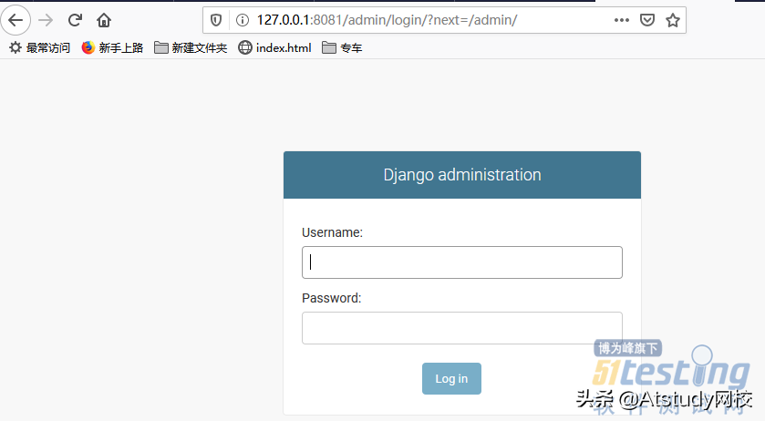 4.访问超级管理员后台:http://127.0.0.1:8000/admin/ 进入超级管理员登录界面:
