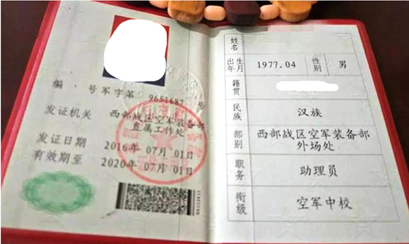 让人又可气又可笑,都2022年了,这些骗子们仍旧胆大包天制作假的军官证行骗,殊不知现在的军官证防伪程度都已经超过人民币防伪了,哪来的勇气这么以身试法。有的骗子不知道军官证已经改版了,还制作2016年之前版本的假军官证行骗,如下图。