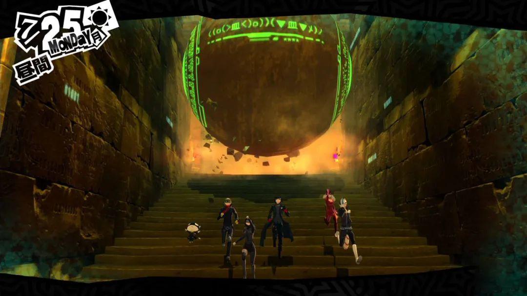 在《女神异闻录》系列作品里,《女神异闻录5》更是把地牢的玩法推到新的高度。在本作里,地牢被称为宫殿,它基本抛弃了原先的随机迷宫设计,而采用了更像冒险动作游戏的固定场景设计,使用大量解谜、机关和强力敌人的配置。而潜入元素的引入则让玩家在移动时也要规划好一条探索路线,以便能够对所有杂兵都从背后攻击。这些设计叠加在一起,让游戏的探索过程颇具压迫感。