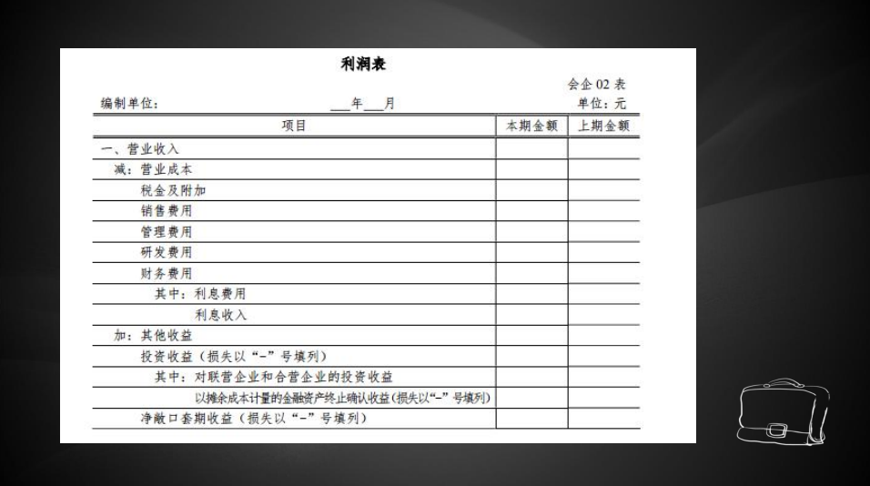 利润表是反映企业在一定会计期间的经营成果,向税务部门、股东等报表使用者提供的报表。如下图: