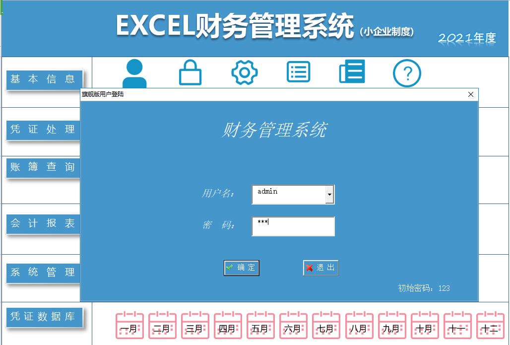 excel财务记账软件一共是6个主功能区:如下图所示。
