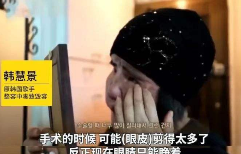 曾在日本做过多次非法整形的韩慧景,面部组织早已和正常人不同!就拿眼皮来说,已经被割走了大半,这导致她睡觉的时候无法闭合,十分痛苦!